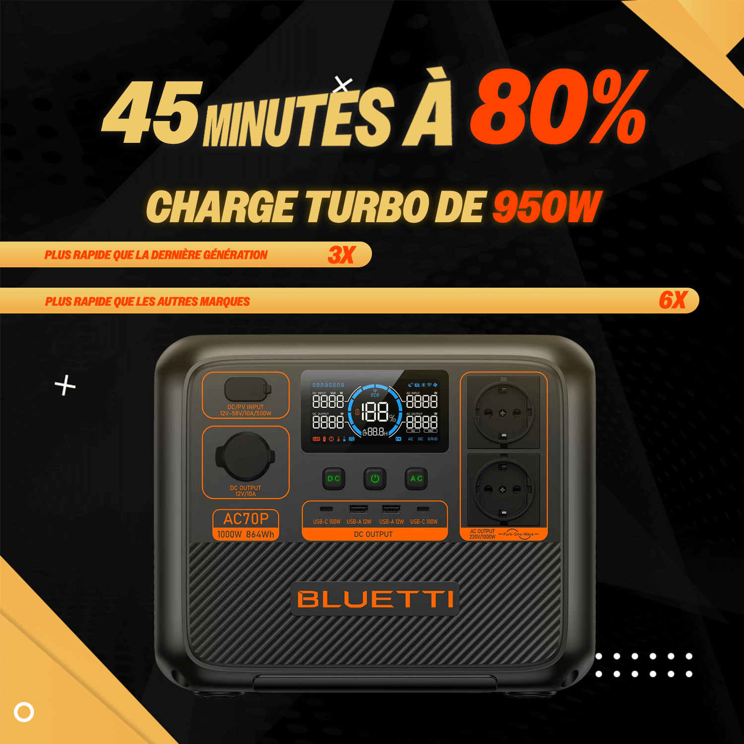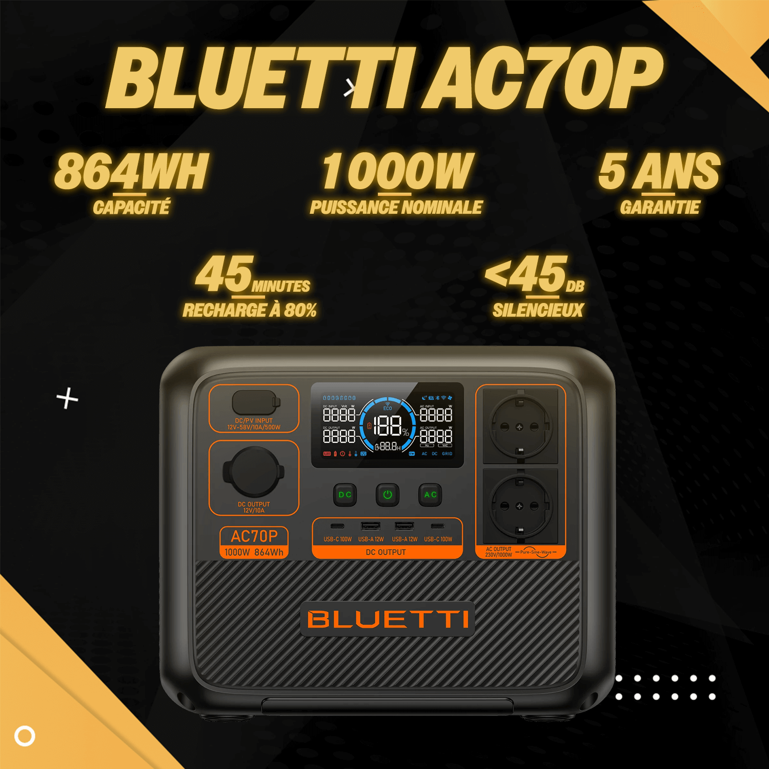 BLUETTI AC70P Station électrique portable | 1000 W / 864 Wh