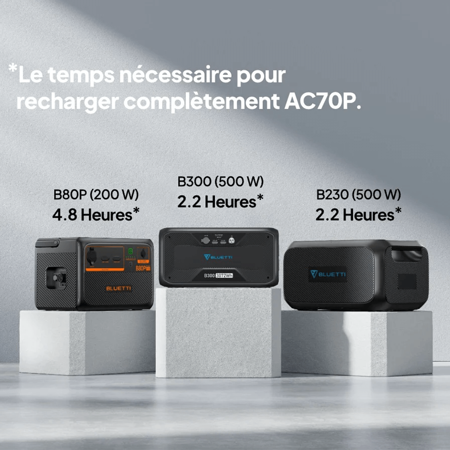 AC70P : 1 x BLUETTI PV350 ou 2 x BLUETTI PV200