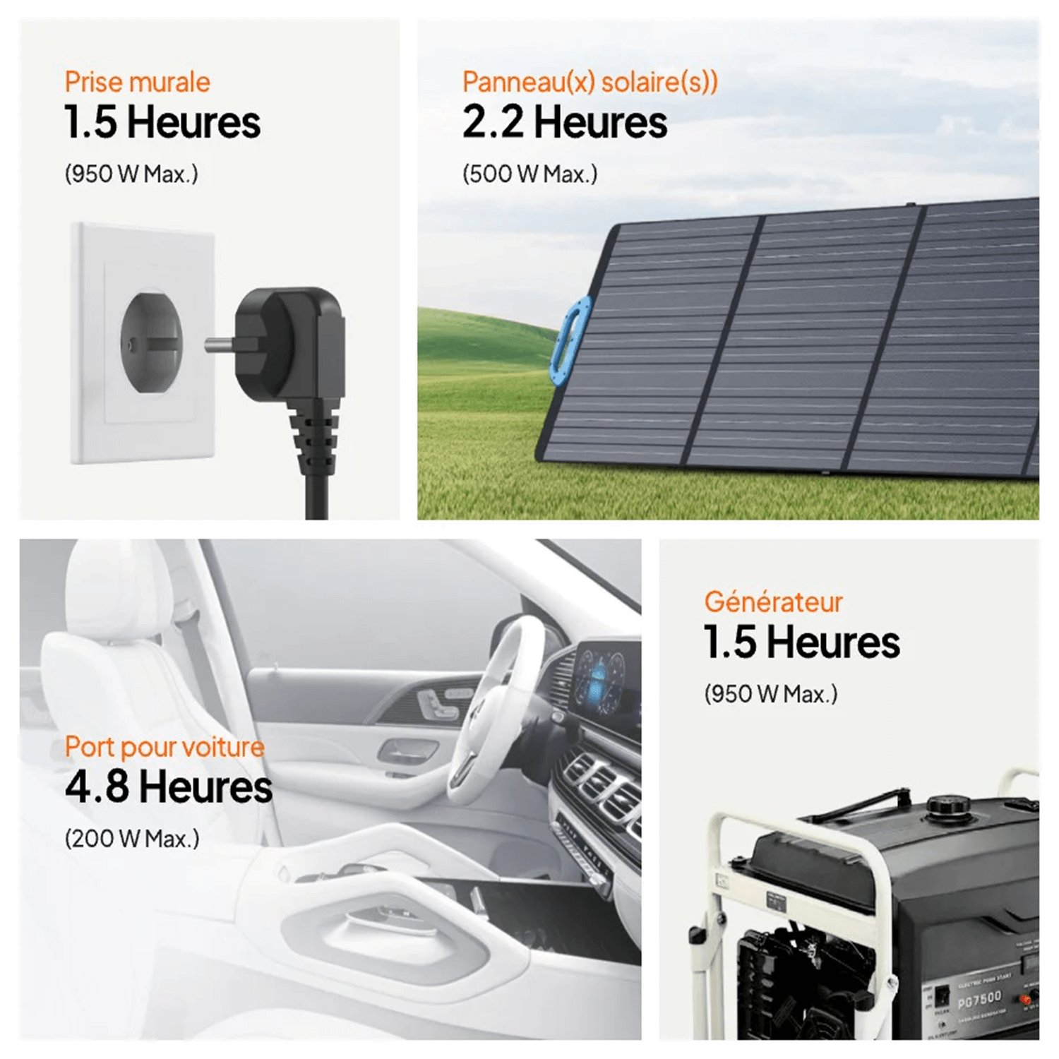 Charge Turbo de 950W, 45 minutes pour atteindre 80%