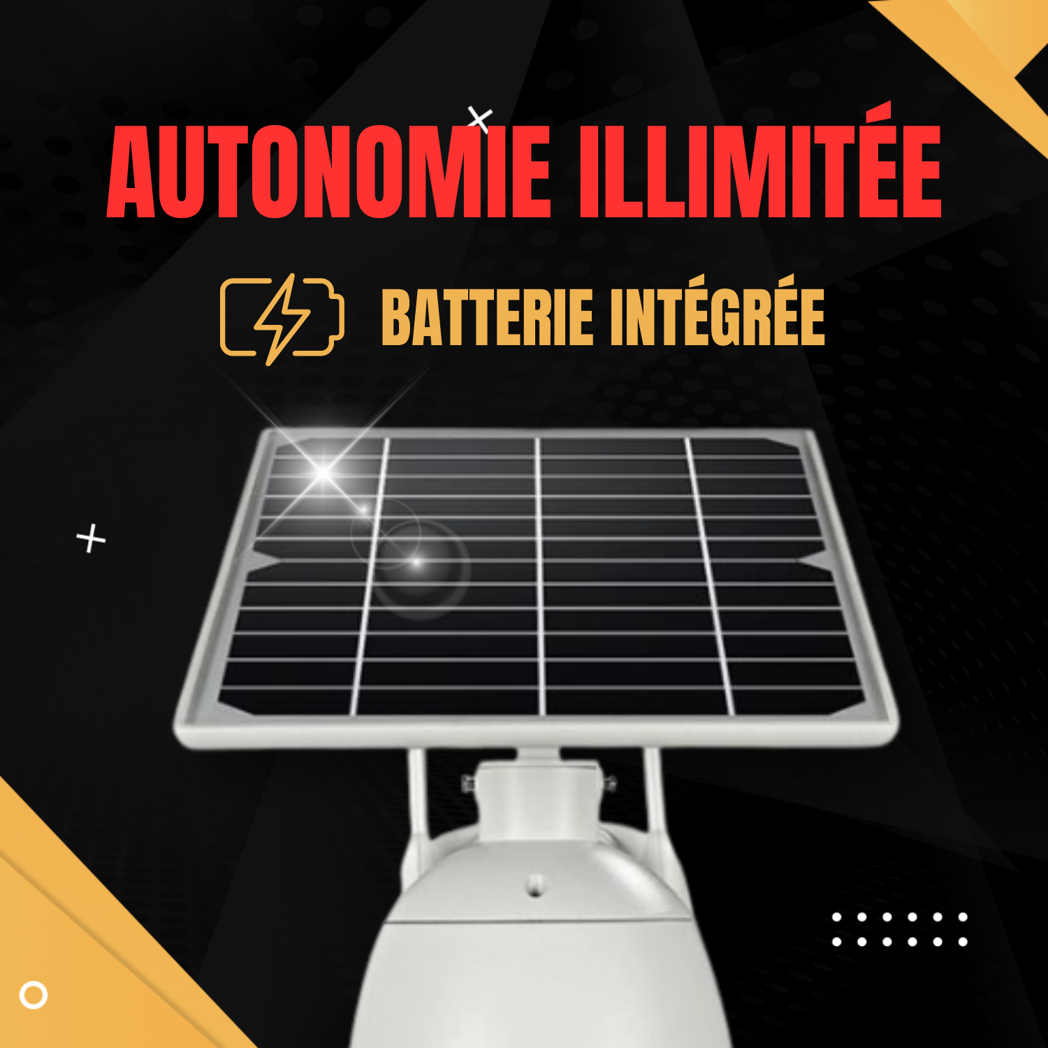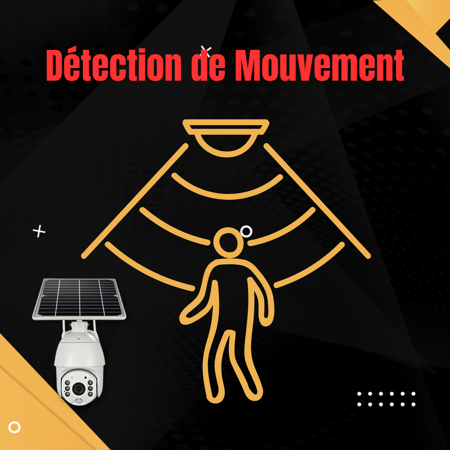 Découvrez notre caméra solaire autonome: contrôlez-la à distance, bénéficiez d'une autonomie solaire illimitée, profitez d'une résolution en HD 1080P et d'une robustesse garantie par la certification étanche IP66. Restez connecté où que vous soyez grâce à la connectivité 4G ou WiFi. Offrez-vous une tranquillité d'esprit même dans l'obscurité totale avec la vision nocturne LED IR et illuminez les recoins les plus sombres grâce aux LED intégrées. Profitez d'un accès simplifié depuis votre smartphone ou tablette, et d'un enregistrement réactif grâce à la détection de mouvement jusqu'à 10 mètres.